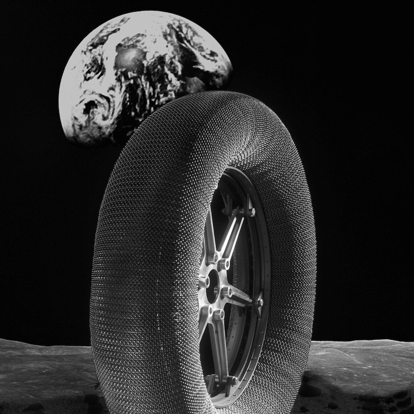 Goodyear and NASA invent "Spring Tire" for moon – an energy efficient tyre that would not go flat.